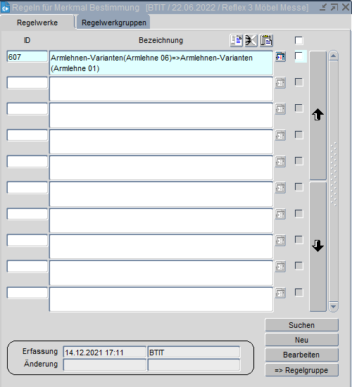 Über die Schaltfläche ==>Regelgruppe besteht die Möglichkeit, bestehende Regelwerke zu einer Regelwerkgruppe zu generieren.