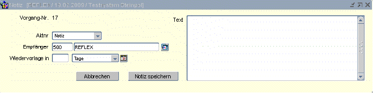 Notiz: Ein Fenster zur Notizerfassung wird geöffnet.