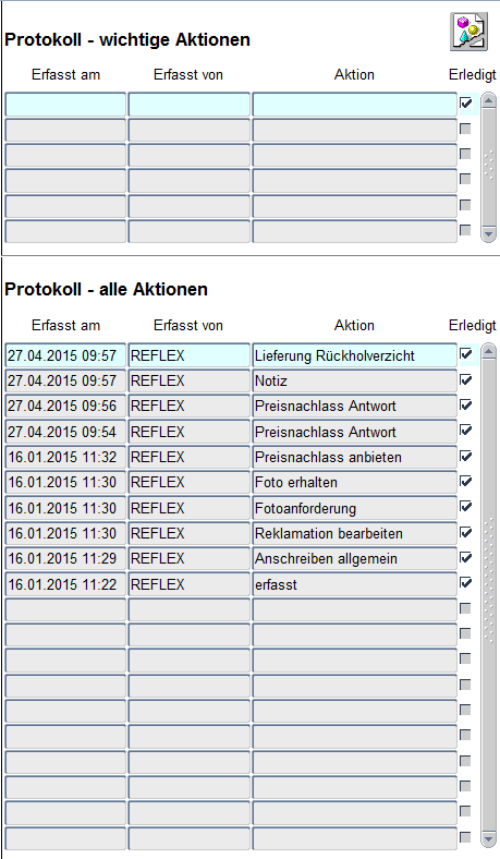 Zusätzlich hat der Reklamationsvorgang einen Reklamationsstatus