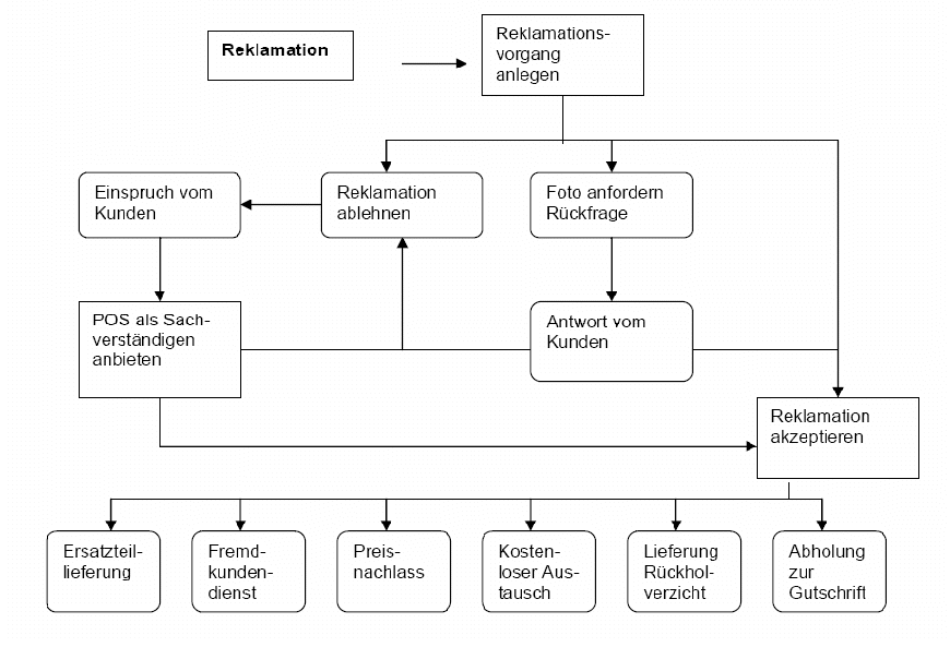 Ein Reklamationsvorgang durchläuft folgende Vorgangsschritte: