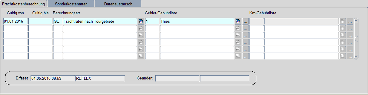 -Button anzuklicken – die Maske „Tourgebiet – Frachtraten" wird aufgerufen.