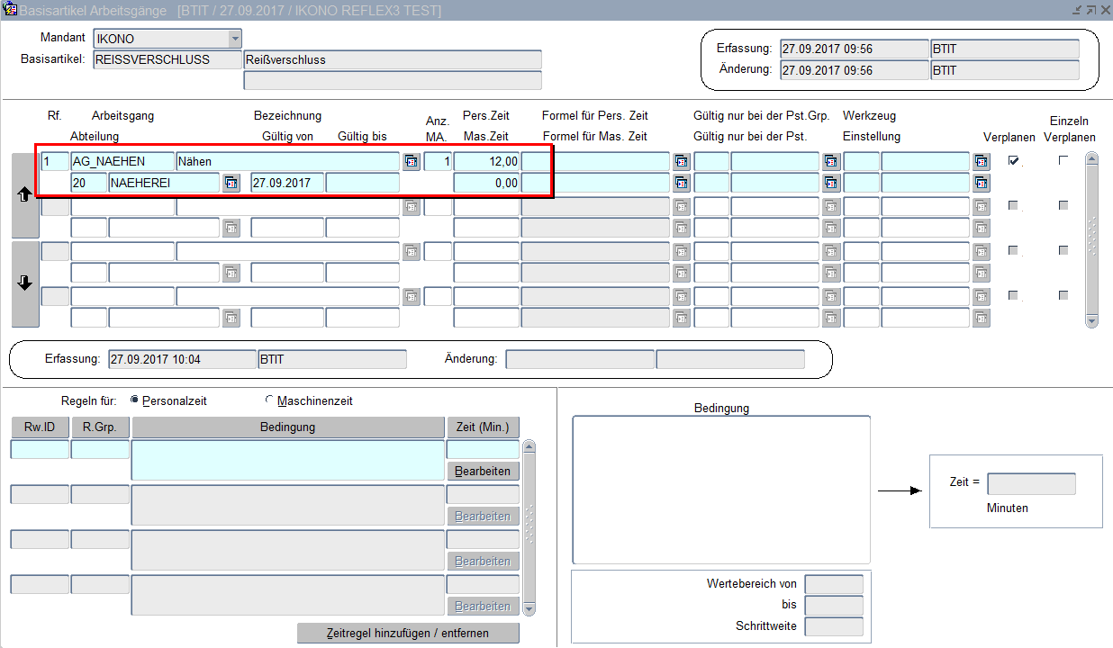 Produktion – Stammdaten – Arbeitszeit – Arbeitsgänge