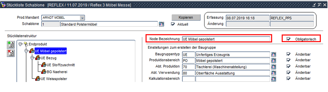Obligatorisch = Kennzeichnung ob das Element zwingend erforderlich ist in der Stückliste. Ist das Kennzeichen gesetzt kann dieses Element aus der Stückliste nicht gelöscht werden. Ist das Kennzeichen nicht gesetzt könnte das Element aus der Stückliste noch gelöscht werden.