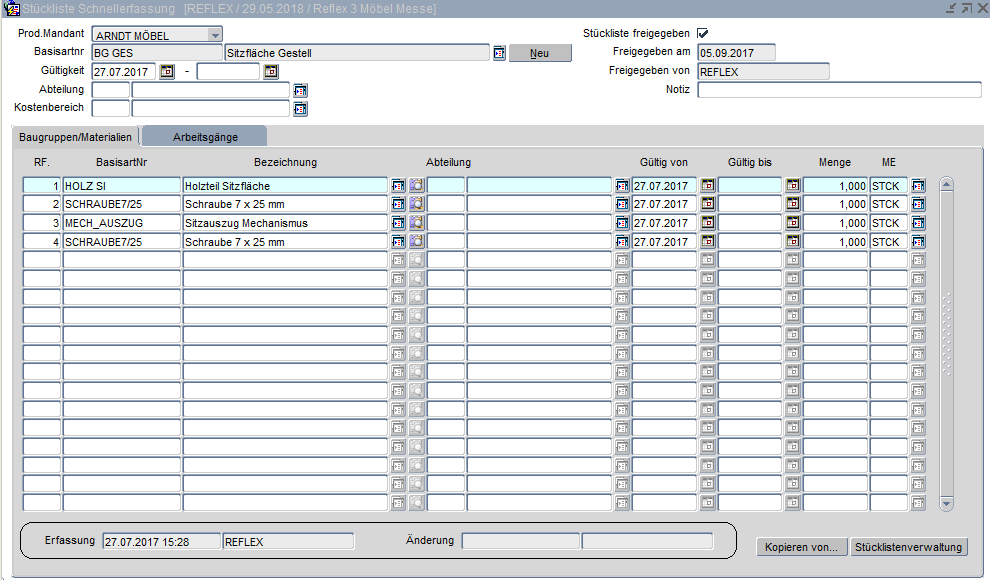 Stuecklisten Schnellerfassung - Baugruppen/Materialien