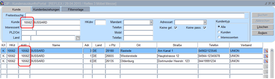 Die Felder Kunden-Nr. und PLZ sind Nummernfelder. Hier erfolgt anders als bei allen anderen Feldern die Suche mit der kompletten Nummer.