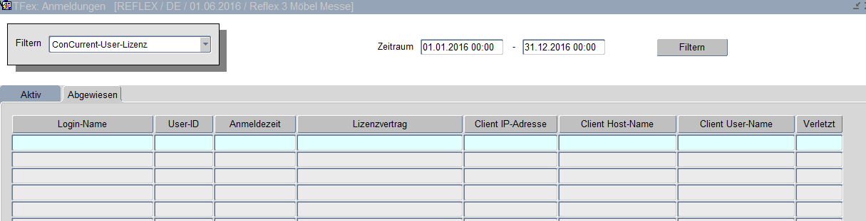 Abgewiesene bzw. nicht zugelassene Anmeldeversuche in Reflex plus werden an dieser Stelle dokumentiert. Es besteht die Möglichkeit, den Zeitraum der Anzeige einzuschränken.