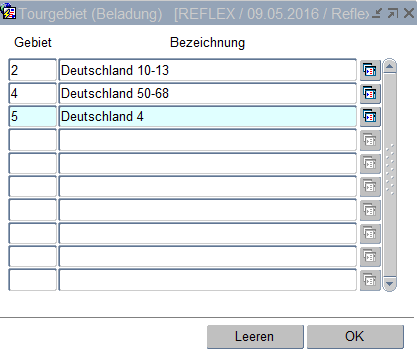 Mit dem Button Leeren werden evtl. aufgeführte Tourgebiete aus der Maske entfernt.