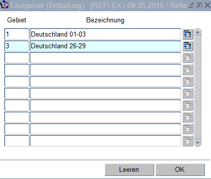 Mit dem Button Leeren werden evtl. aufgeführte Tourgebiete aus der Maske entfernt.