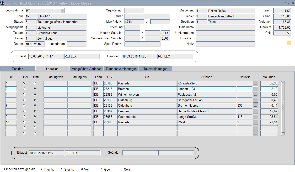 Datum der Beladung = „Ladedatum" des Tour-Kopfsatzes,