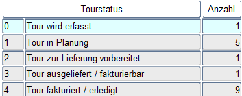 -Rechts daneben wird die Anzahl der die Suchbedingungen erfüllenden Touren nach Tourstatus geordnet, angezeigt.