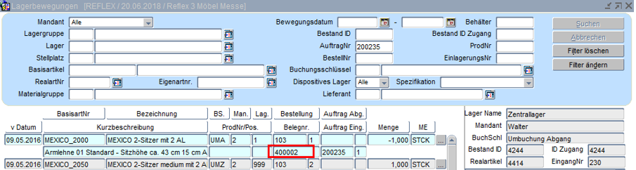 Die Umbuchung vom Fertigwarenlager auf das Transportlager in der Toursteuerung beinhaltet folgende Funktion: Bei dieser Umbuchung werden im Hintergrund automatisch die Lagerabgangsscheine erstellt, wenn diese Funktion entsprechend in der Konfiguration eingestellt ist. Diese Abgangsscheinnummern werden in den Lagerbewegungen als Belegnummer angezeigt. Gedruckt werden können diese Abgangsscheine im Einkauf über die Form Fertigware Abgangsschein oder über TFex.
