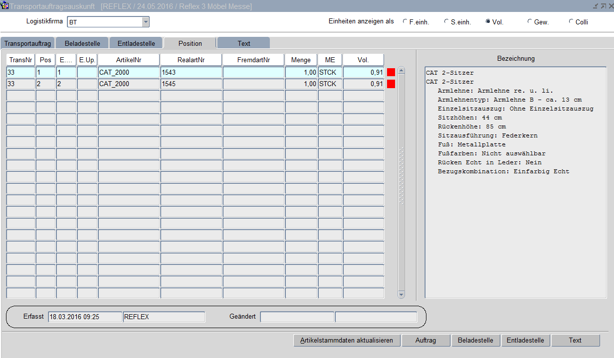 Transportauftragsauskunft Position