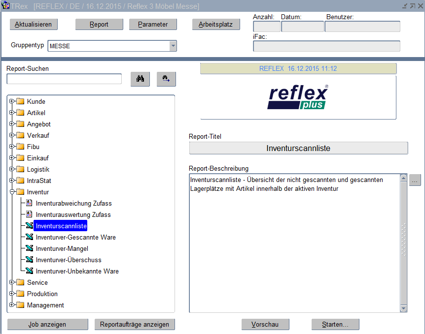 Zum Einblenden oder Ausblenden von den einzelnen Reports klicken Sie auf das Symbol + bzw. - oder doppelklicken Sie auf die einzelnen Überschriften (Globus, SKM, Thies-IT).