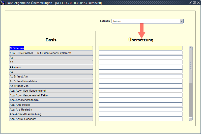 Diese Übersetzungen werden bei Report für die komplette Übersetzung des Reportsinhalts und bei Listen für die Übersetzung der Datenzeilen verwendet.