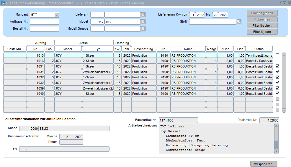 Mit dem Button OK wird die Umdisponierung vorgenommen.