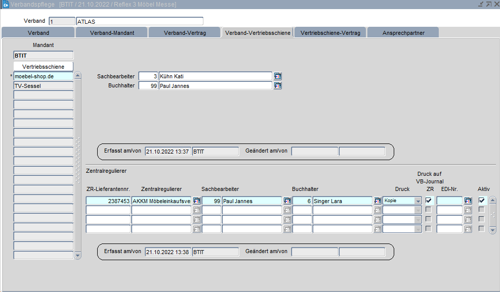 Gibt es eine Vertriebsschienenzugehörigkeit, aber keinen gesonderten Eintrag hierfür, so werden die ggf. eingetragenen Zentralregulierungsdaten für den Mandanten gezogen.