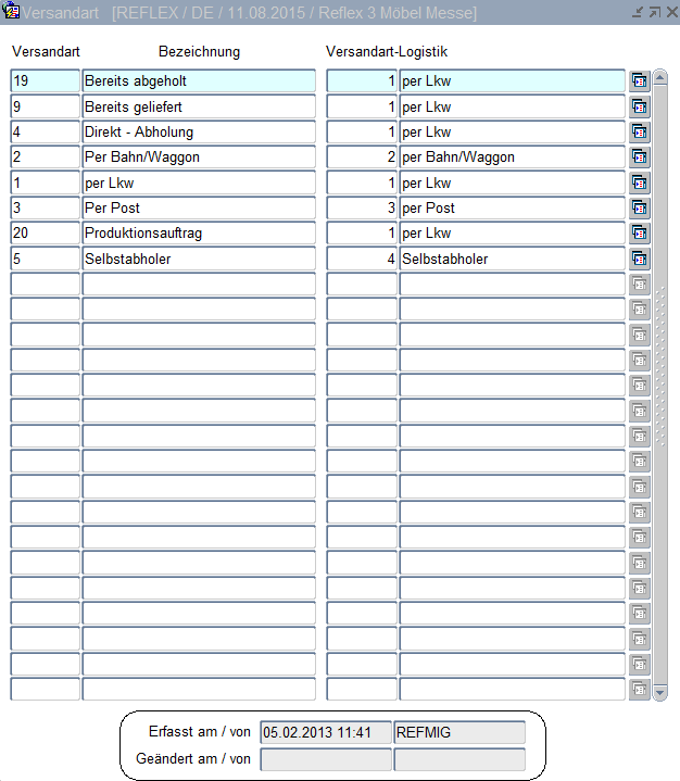 In dieser Maske wird der Versandartenstamm erfasst und gepflegt.