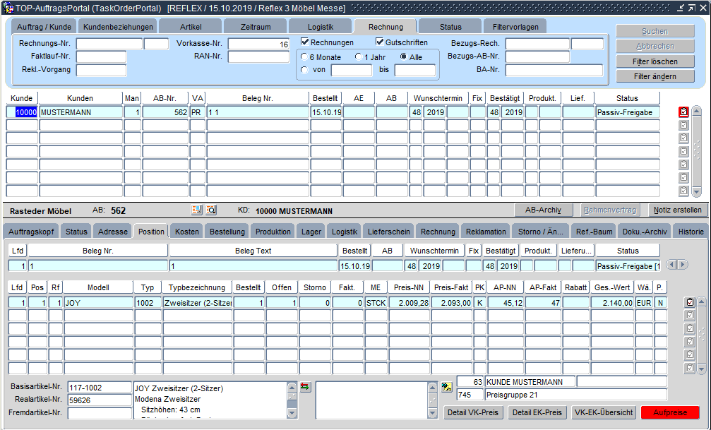 Auch im TOP-Auftragsportal kann mit der Vorkasse-Rechnung-Nummer im Register "Rechnung" gesucht werden.