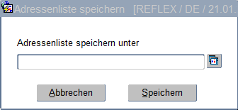 Speichert die Kundenauflistung in einer Adressliste. Hierfür öffnet Reflex ein Fenster für die Eingabe einer Bezeichnung.